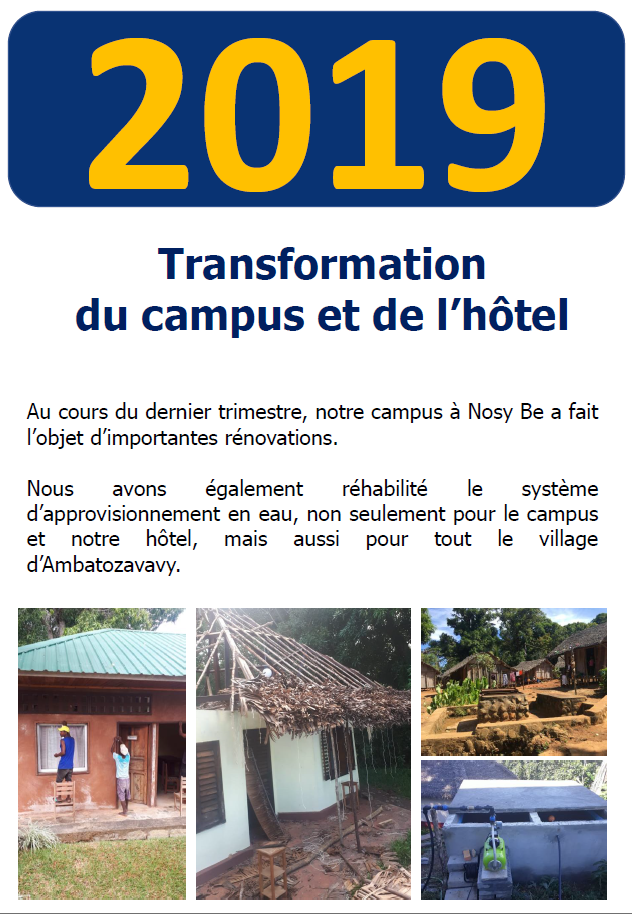 Le campus de l'école hôtelière Wings of Change à Nosy Be est ouvert aux jeunes de 18 à 26 ans rencontrant des difficultés financières. Le programme, entièrement financé, combine des sessions en présentiel et en ligne. À l'issue d'une formation d’un an, les étudiants reçoivent un certificat et bénéficient d’un accompagnement dans leurs démarches professionnelles.